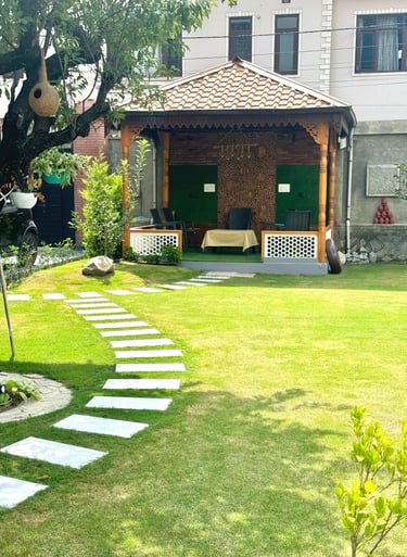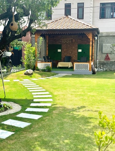 A stunning hotel property in Sonmarg, landscaped and designed by Aaab Kashmir. The space beautifully integrates nature, architecture, and relaxation — creating a perfect hillside retreat.
