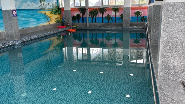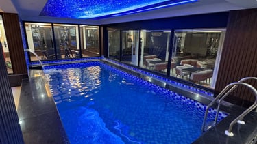 At Hotel Karam Gold, Srinagar — An indoor pool experience under a shimmering star-lit ceiling, blending elegance with indulgence