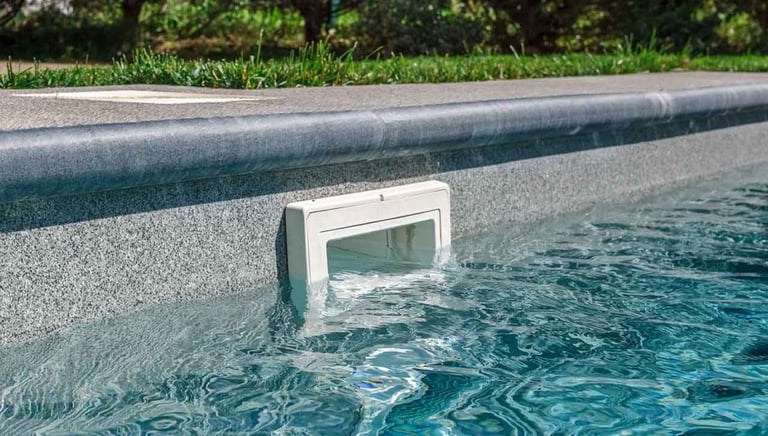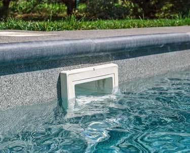 A skimmer pool is a type of swimming pool that features a skimming system designed to remove debris from the water surface. This system consists of one or multiple skimmers, which are located at the edge of the pool and connected to the pool's filtration system. Skimmer pools are commonly found in residential settings and are popular due to their efficient cleaning mechanism. As water circulates through the pool, the skimmers draw in any floating debris such as leaves, insects, or other foreign objects. The debris is then trapped in a basket or filter within the skimmer, preventing it from sinking to the bottom of the pool. This helps to maintain a clean and aesthetically pleasing pool environment.