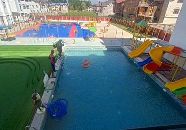 The swimming pool provides a refreshing escape from the heat, with crystal clear waters and comfortable loungers for relaxation.